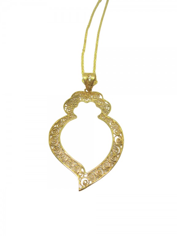 Medalha de prata dourada em filigrana. Mede 6.7 cm. Peso 4 g. O fio não está incluído.