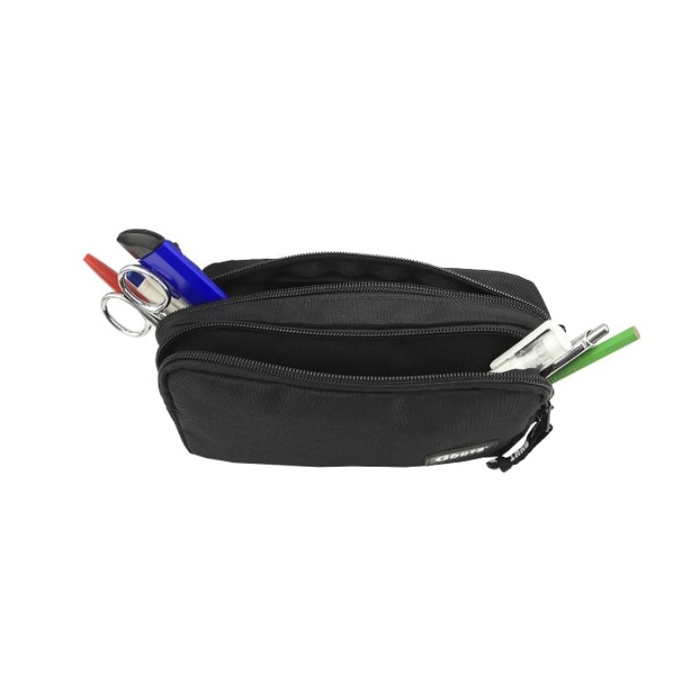 Estojo Duplo, com duas bolsas independentes a fecho. Dimensões: • 21 x 10 x 7 cm Material: • Polyester 600D • Fechos e cursor certificados YKK