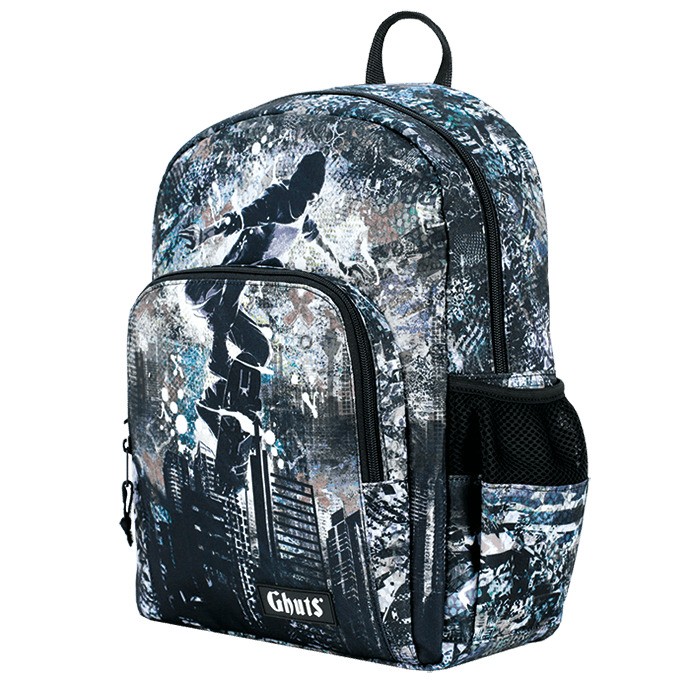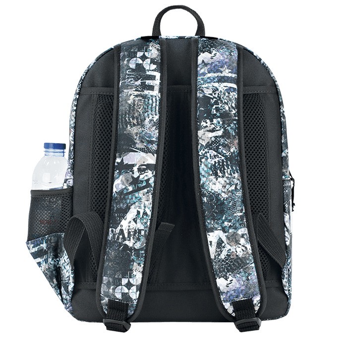Bolsa em rede lateral. Mochila preparada para trolley (adquirido à parte).