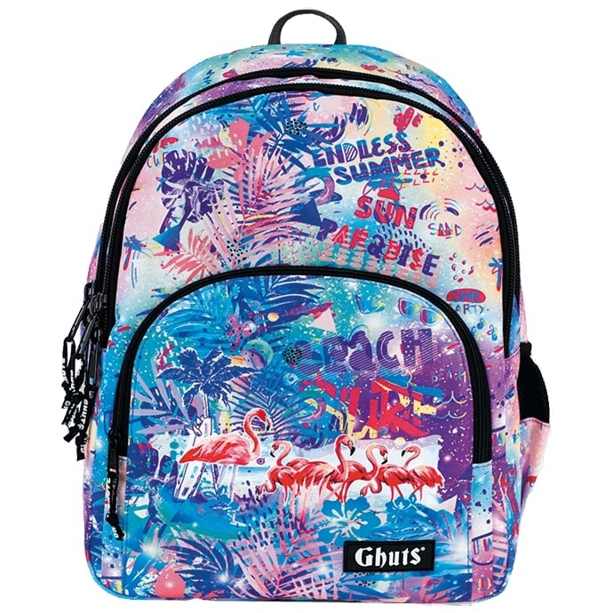 Mochila com três compartimentos, ideal para uma utilização escolar.