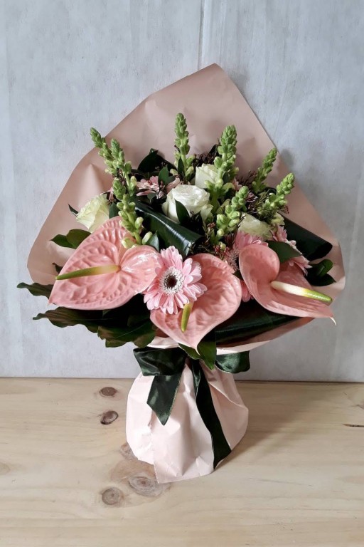 Ramo composto por rosas, gerberas, anturios, bocas de lobo. Qualquer flor indisponível, será substituída por outra similar ou de valor idêntico.