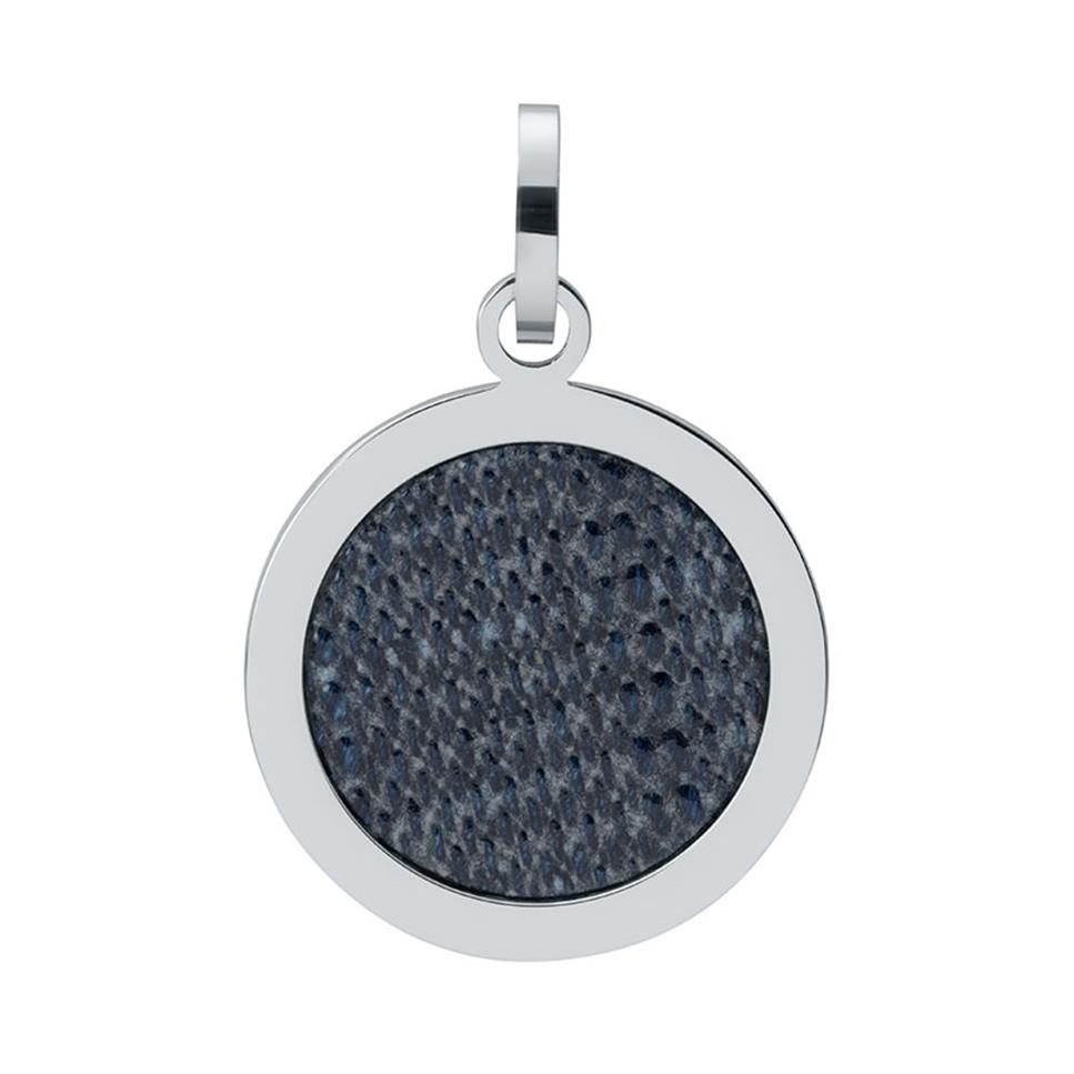 O pingente iXXXi Jeans 22mm é feito de aço inoxidável e tem um acabamento prateado. É grande e redondo prateado contendo um círculo um pouco menor com uma estampa de jeans. Tem um diâmetro de 22 mm.