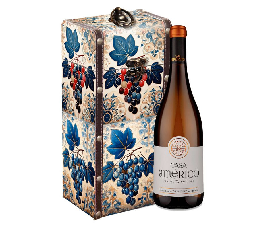 A Coleção de Cabazes de Natal 2025 apresenta o Casa Américo Branco 750ml - Estojo Natal: Casa Américo Branco 750ml