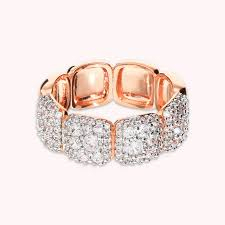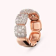 Anel de aliança Bronzallure feito em liga Golden Rosé, banhado a ouro rosa 18k, com elementos quadrados em pavé de zircônias cúbicas, qualidade luminosa.