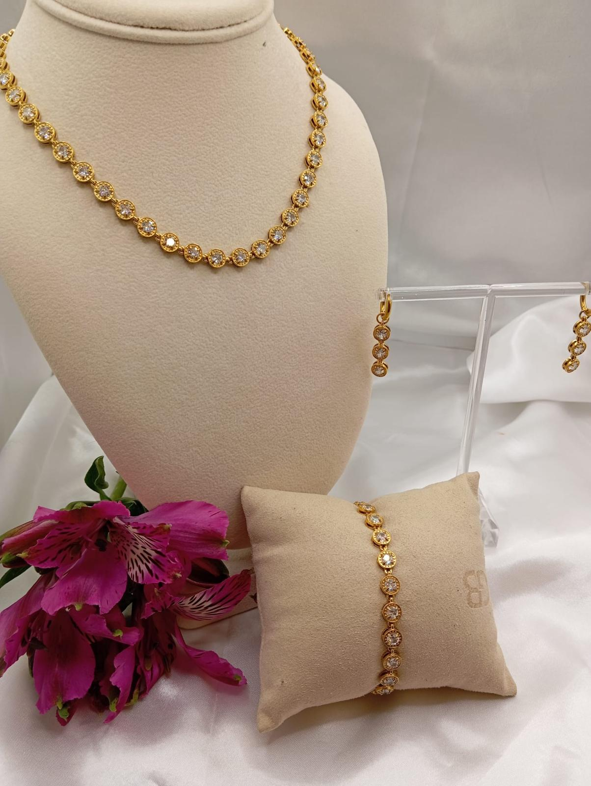 Colar Realeza em aço inoxidvel com zirconias cravejadas, disponivel em dois banhos , dourado ou prateado, com 35 cm + 7 cm de extensor.Um designer classico e sofisticado.
