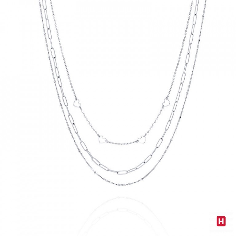 Colar em aço, triplo. Mede 40 + 44 + 48 cm.
