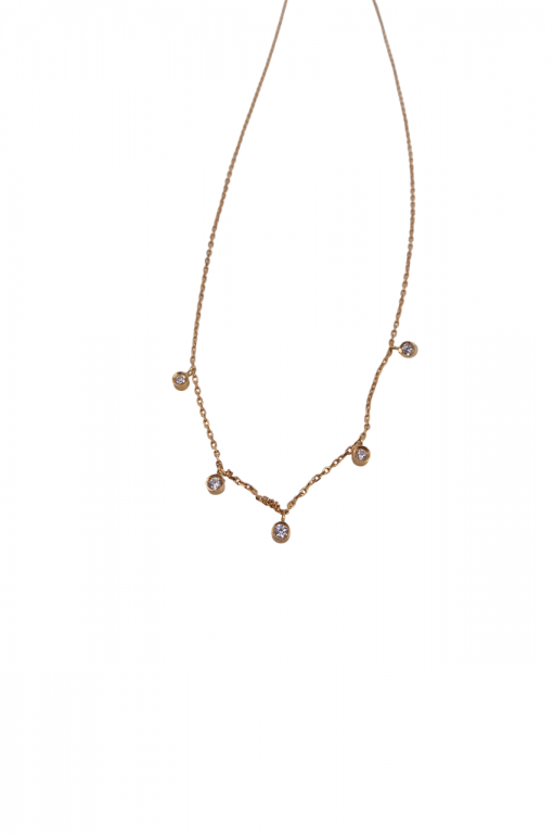 Fio de ouro 19.2 quilates com zircónias. Mede 44 cm. Peso 2.2 g. Todos os artigos que vendemos são NOVOS.