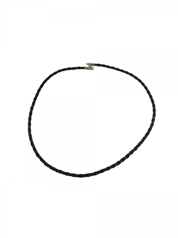 Fio de prata e cabedal. Mede 42 cm. Peso 1 g.