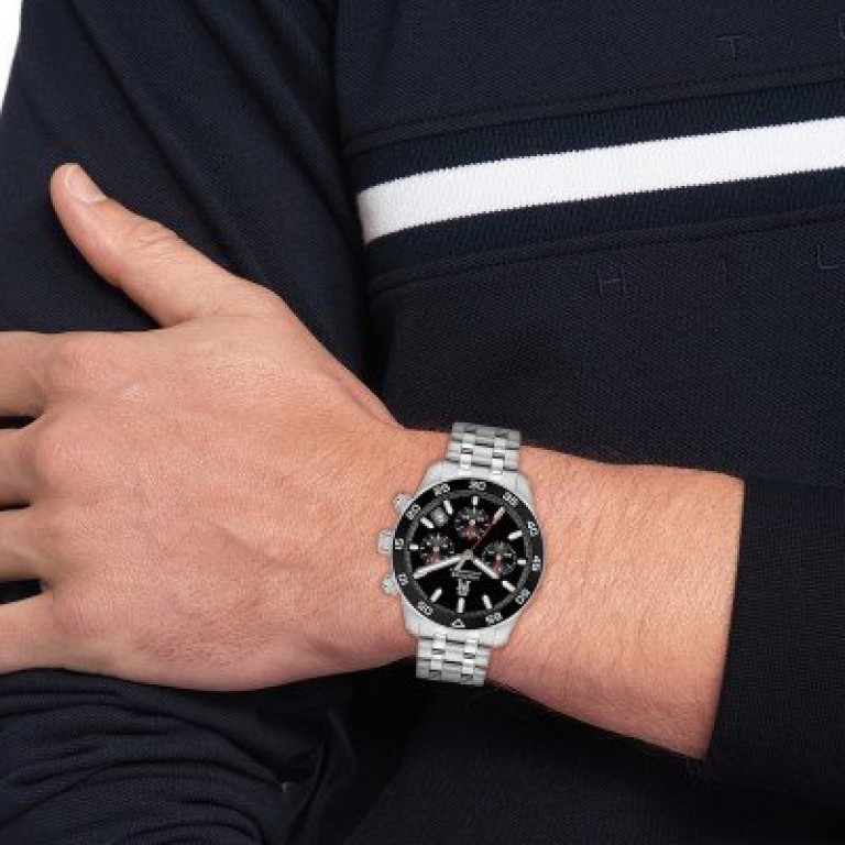 Relógio Tommy Hilfiger 1792156, funcionamento a pilha, fundo preto, bracelete aço, caixa de 41 mm, com calendário. Garantia de 3 anos.