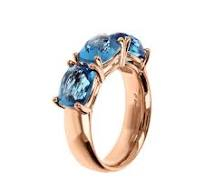 Anel Bronzallure Riviera feito em liga Golden Rosé, banhado a ouro rosa 18k, adornado com três pedras preciosas prismáticas retangulares (6x8 mm) com lapidação em mosaico.