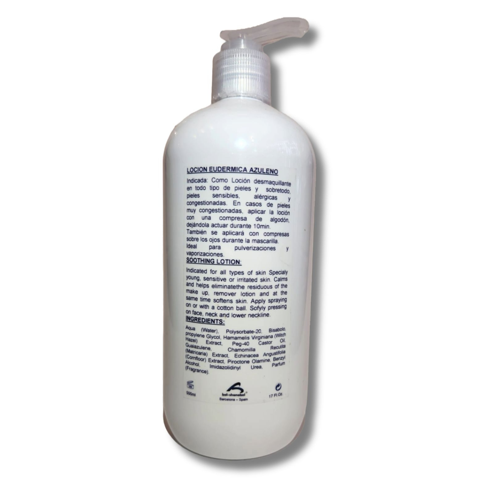 Loção para peles sensíveis e/ou sensibilizadas, reativas, alérgicas e para peles que mostrem sinais de congestionamento.