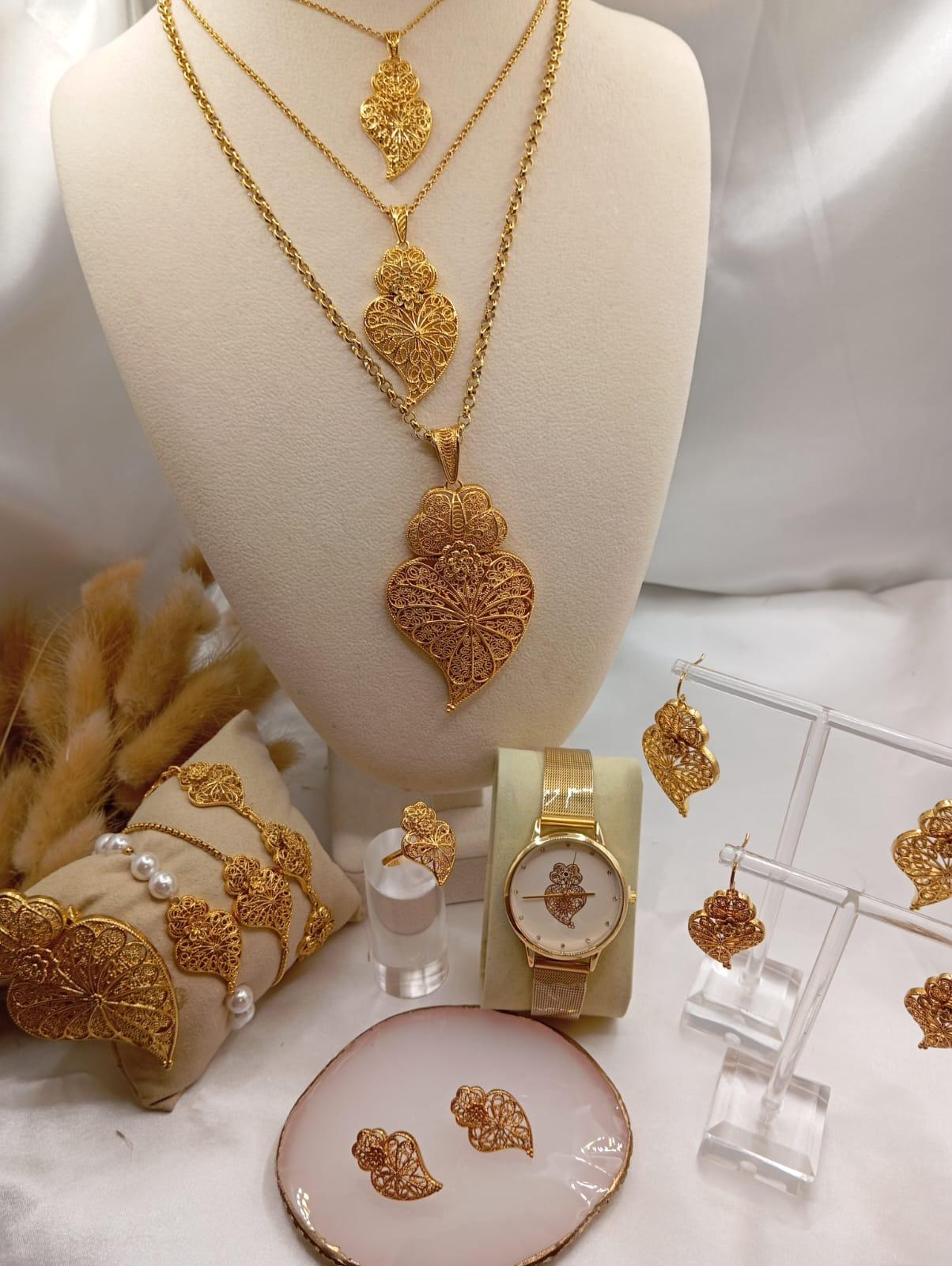 Pulseira coração de viana Camélia, em aço inoxidavel com banho de ouro , inspirado nas joias tradicionais de filigrana portuguesa
