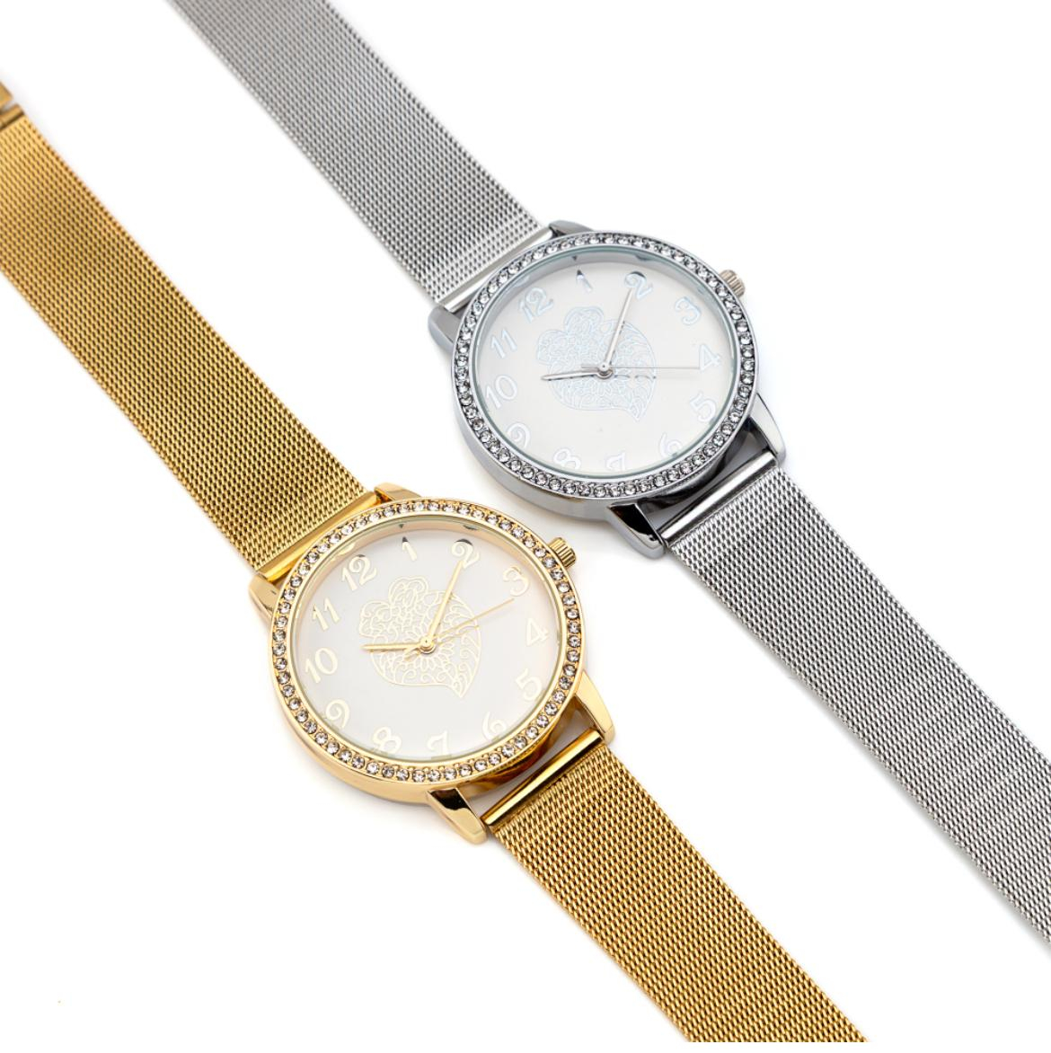 Relógio coração de viana malmequer em aço inoxidavel, disponivel em dourado e prateado