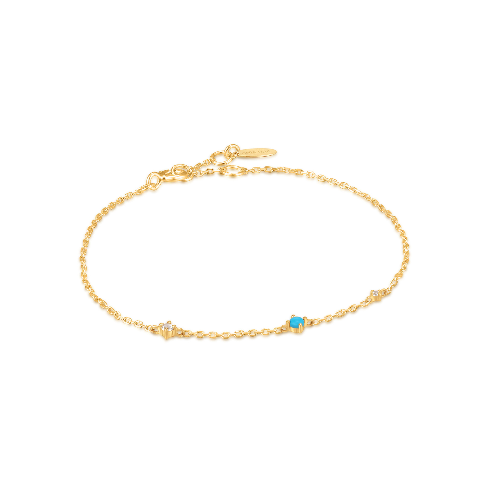 Quer dar um toque de cor à sua coleção de joias finas nesta temporada? Opte por uma turquesa vibrante e luminosa em uma pulseira delicada de corrente de ouro 14k. Para um toque de brilho perfeito, duas safiras brancas, cada uma em uma cravação simples de ouro, completam a peça. Com 3 tamanhos ajustáveis ??à sua escolha, você sempre encontrará o ajuste perfeito.