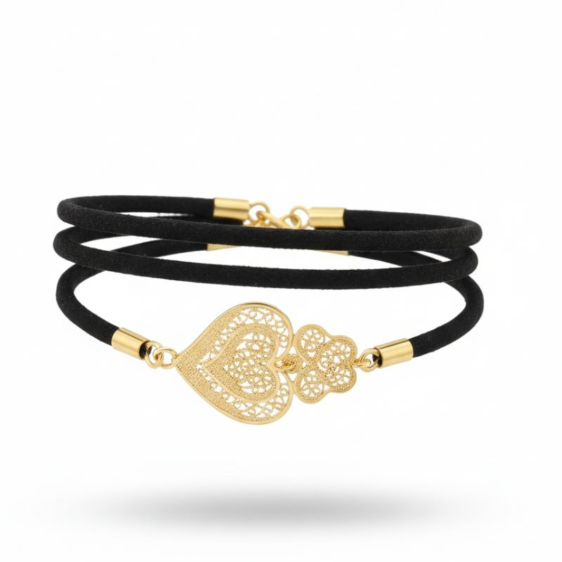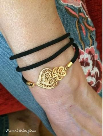 Pulseira com coração de filigrana em prata dourada ou prateada. JÓIAS COM GARANTIA VITALICIA