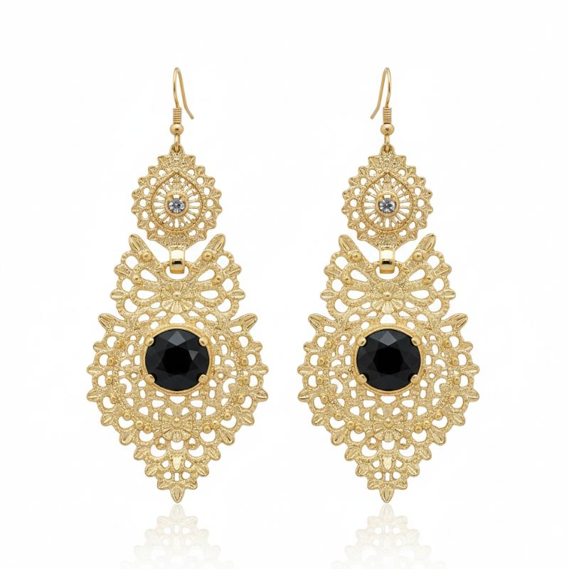 Brincos à rainha com pedras fumé em prata dourada ou prateada. JÓIAS COM GARANTIA VITALICIA