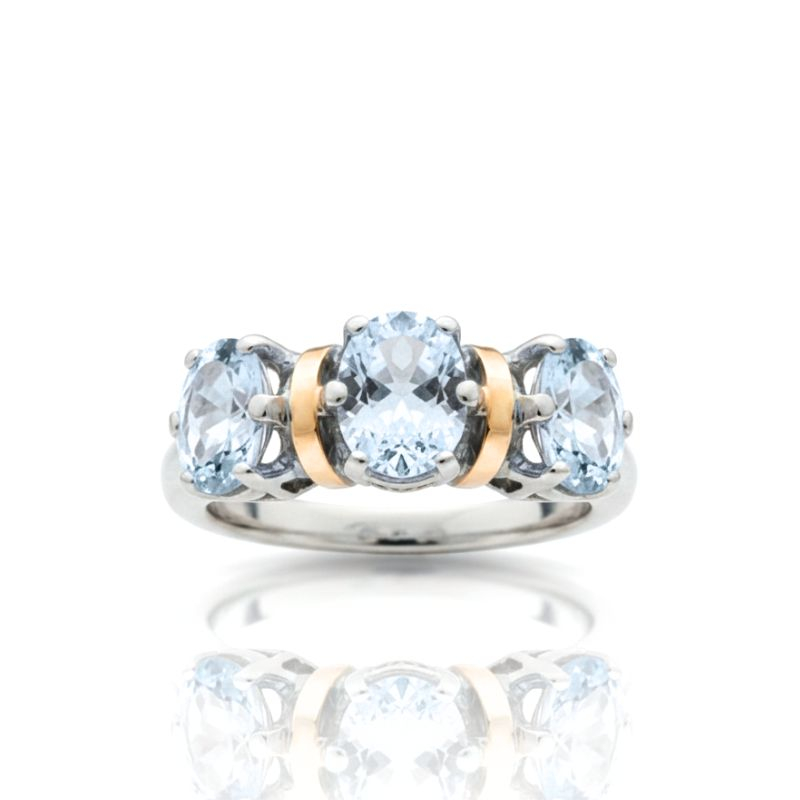 Anel em ouro e prata com pedras águas marinhas. Tenho com outras cores e o conjunto completo. JÓIAS COM GARANTIA VITALICIA