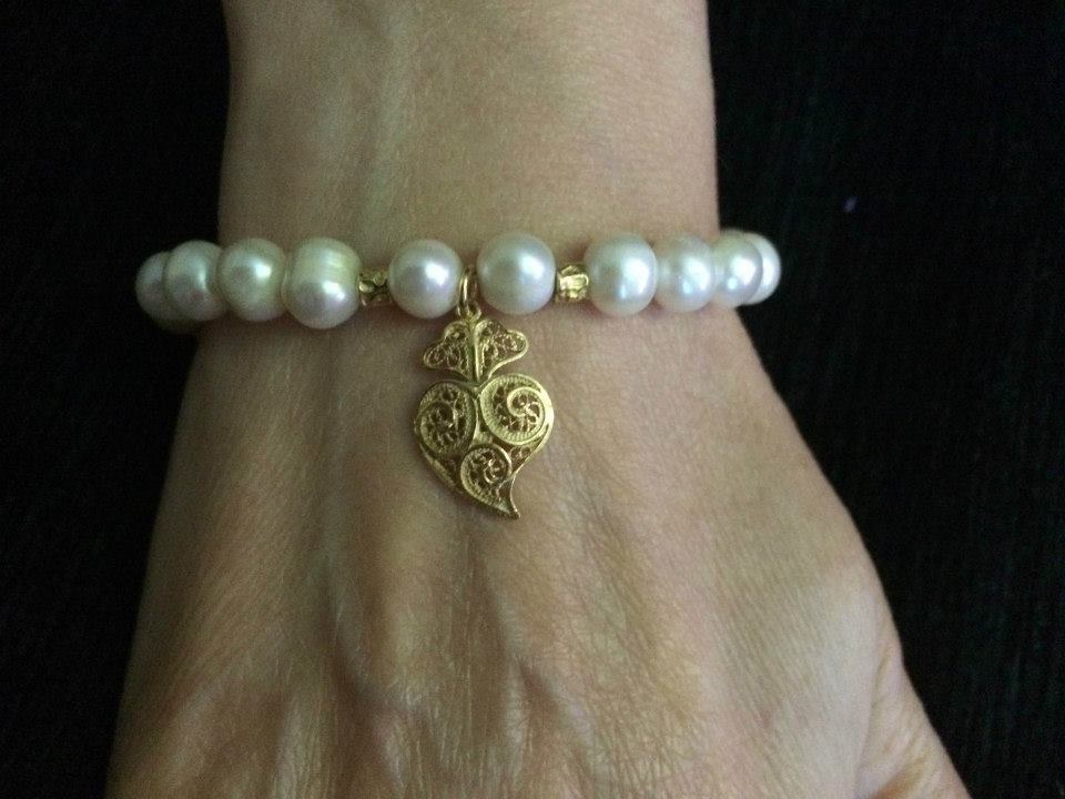 Pulseira de pérolas com coração de Viana em filigrana em prata dourada ou prateada. Tenho os brincos, o fio e o anel de conjunto. JÓIAS COM GARANTIA VITALICIA