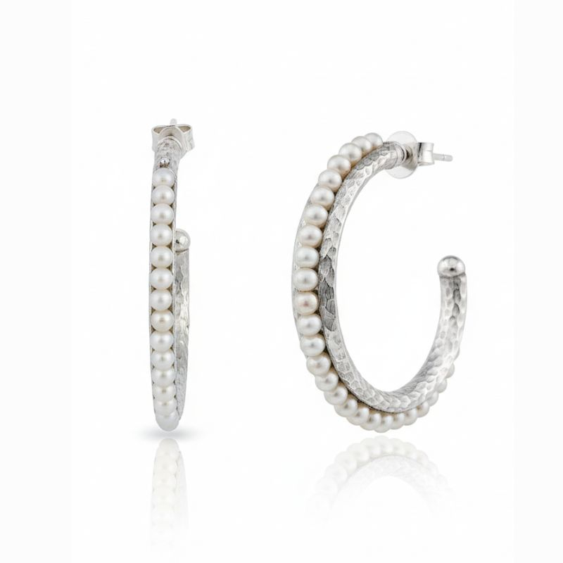 Argolas em prata dourada ou prateada com pérolas. Tenho com pedras coral. JÓIAS COM GARANTIA VITALICIA