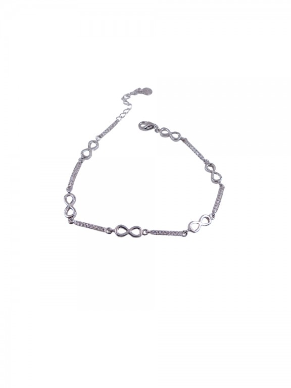 Pulseira de prata com zircónias. Mede 17 cm + 3 cm de extensão. Peso 4.7 g.