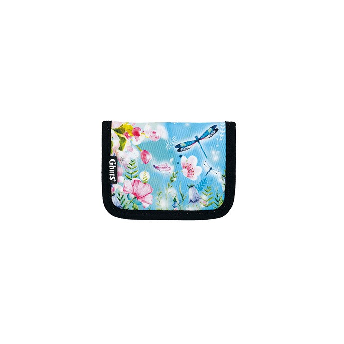 Carteirinha com mola, compartimentos para cartões, passe escolar, notas e porta-moedas com fecho no interior.