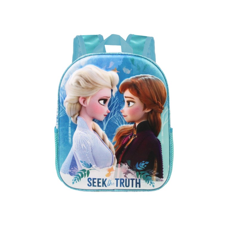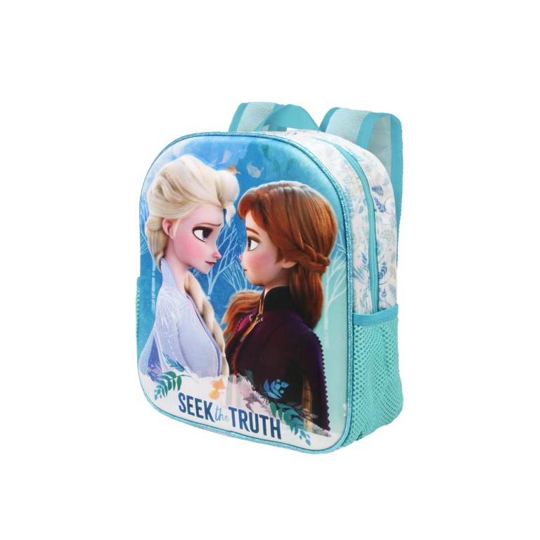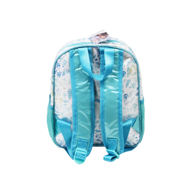Mochila de berçário com frente em relevo. Compartimento principal com zíper e forro interno. Dois bolsos laterais de rede. Medidas: 26cm x 31cm x 11cm