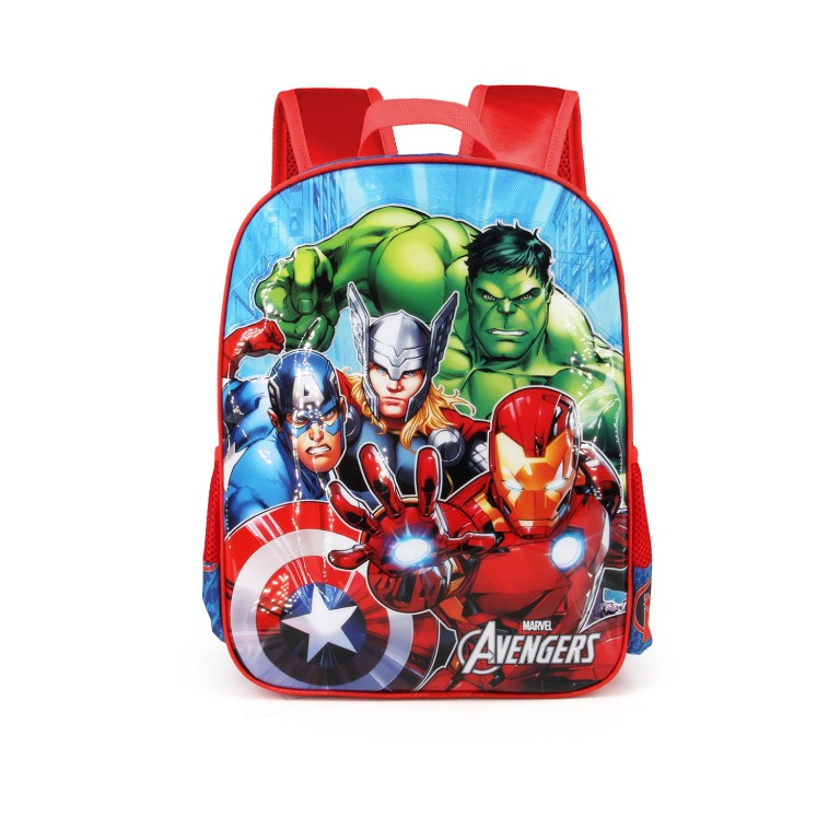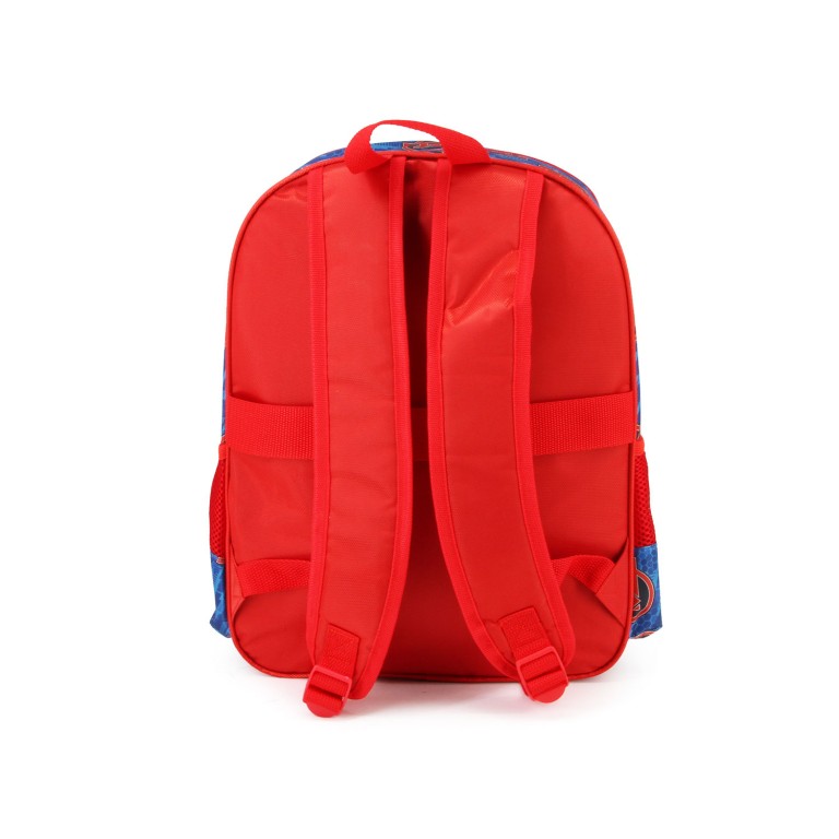 Mochila com um único compartimento grande, alças ajustáveis acolchoadas, dois bolsos laterais de malha e uma alça traseira para segurar em um carrinho. Medidas: 31cm x 39cm x 15cm