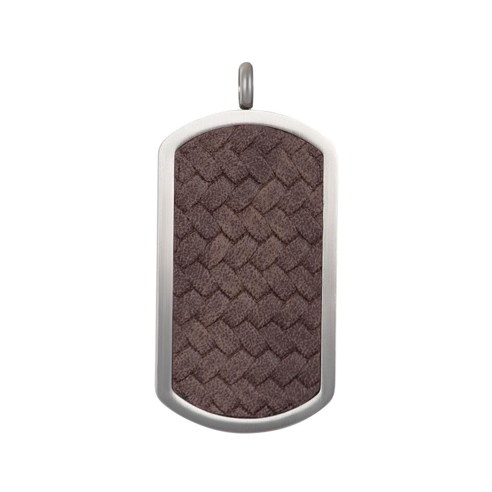 O pingente de couro iXXXi MEN Dog Tag é feito de aço inoxidável e possui acabamento em prata fosca. O pingente consiste em uma forma retangular em prata fosca que foi arredondada para que os cantos pontiagudos desapareçam. A forma mostra um padrão de couro marrom trançado. Você pode combinar o pingente de couro Dog Tag com um colar iXXXi MEN de sua escolha de nossa coleção. Misture, combine e jogue, por exemplo, com vários pingentes em seu colar iXXXi.