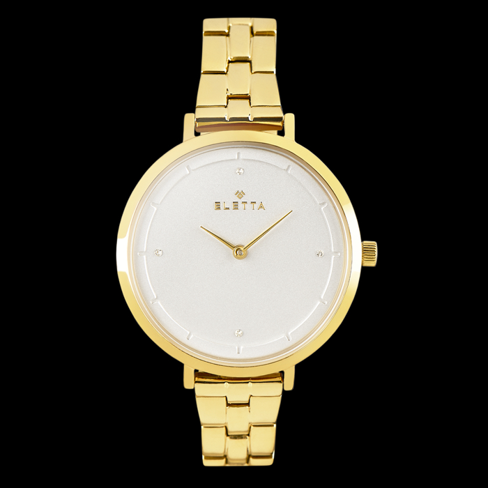 Descubra a linha de relógios Eletta Pearl, onde elegância e tendências se encontram .Este modelo, com caixa em aço dourado de 34mm, mostrador branco e delicados cristais nos indexes, garante um estilo sofisticado e intemporal. Inclui ponteiros e coroa dourados, além de uma bracelete metálica dourada e uma bracelete extra de 12mm, oferecida com cada compra. Adicione um toque de luxo ao seu dia-a-dia com os relógios Eletta Pearl.