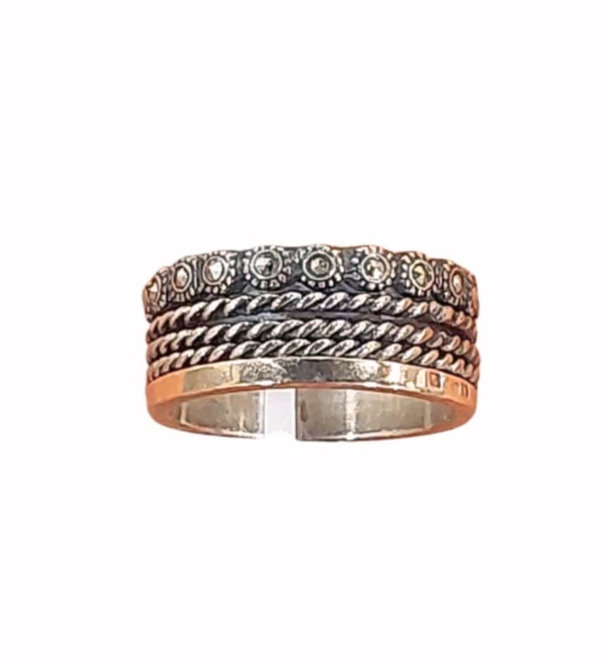 Anel Anti - Stress de zircónias | Prata | Ouro Amarelo