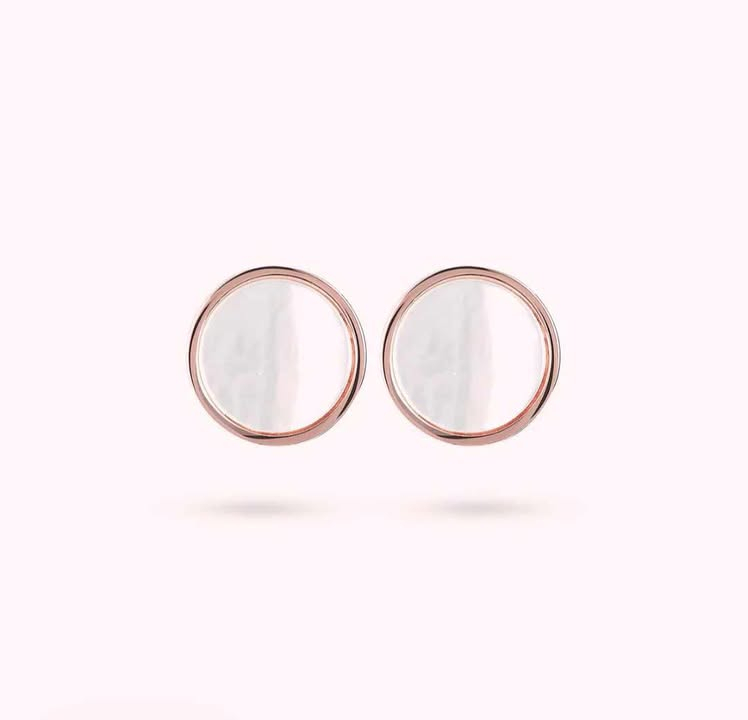 Brincos de pino Bronzallure feitos de liga Golden Rosé, banhados a ouro rosa 18kt, com pequeno disco (1 cm) em pedra natural montado em uma base banhada a ouro rosa 18kt; fecho de baioneta.