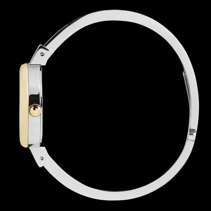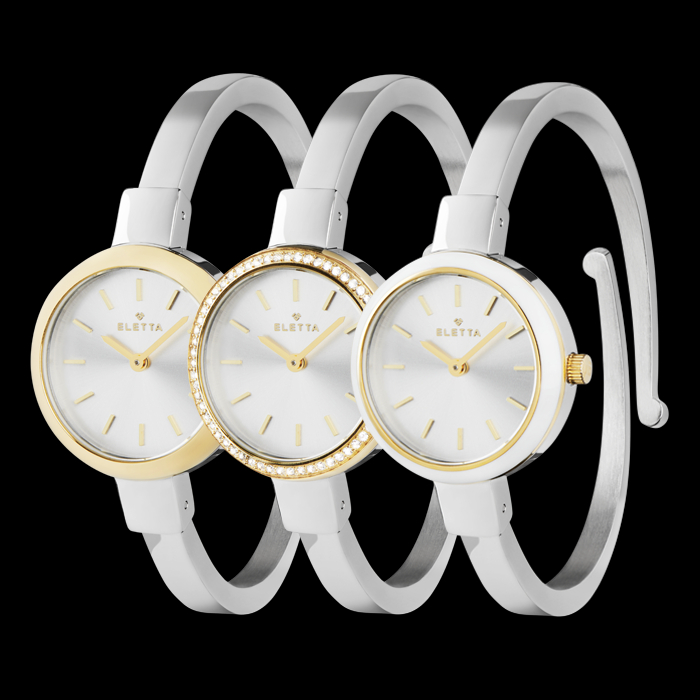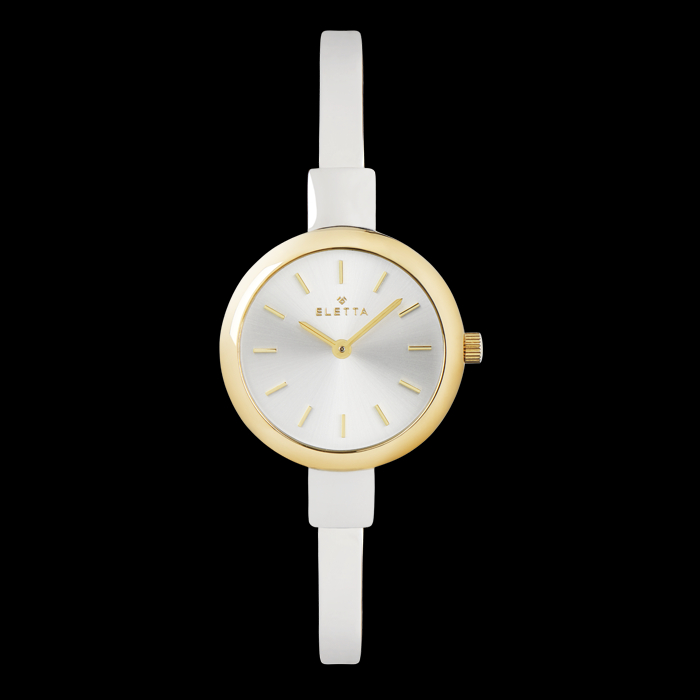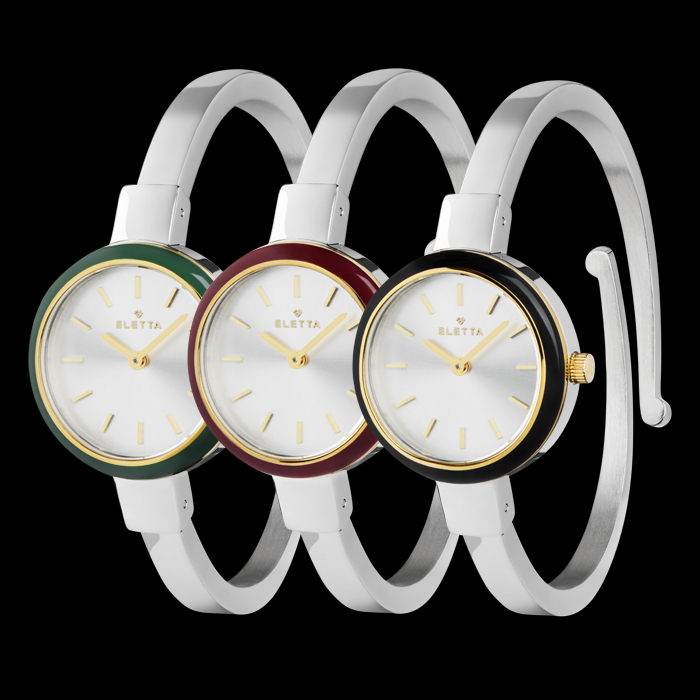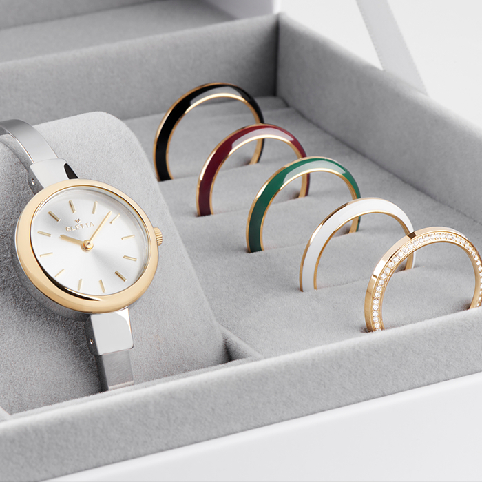 A nova linha Eletta Vintage recupera a sofisticação de um modelo icónico da marca dos anos 1950, agora reinterpretado para a mulher moderna. No ano em que se celebram os 75 anos de história da Eletta, esta coleção traz de volta a essência da elegância intemporal, aliando versatilidade e tradição num design inesquecível.Cada box inclui um relógio tipo bangle e seis aros intercambiáveis, que permitem uma personalização fácil e múltiplas combinações que se adaptam ao estilo e ritmo do dia-a-dia de qualquer mulher. Com caixa de 27mm e bracelete de 6mm, este relógio equilibra subtileza e presença.O modelo Eletta Vintage Silver & Gold combina caixa prateada com aro dourado liso, e é acompanhado por cinco aros extra em dourado com diferentes acabamentos: brilhantes, resina branca, verde, bordeaux e preta. O mostrador prateado em raio de sol reforça o seu carácter de charme e exclusividade.