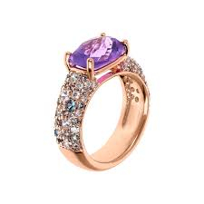 Anel Bronzallure em liga Golden Rosé, banhado a ouro rosa 18k, com superfície pavé de zircônias cúbicas, qualidade luminosa, adornado com uma pedra prisma retangular (8x5 mm) com lapidação mosaico.
