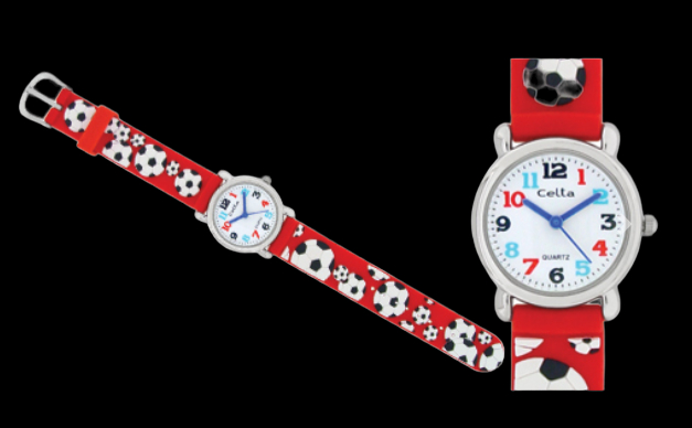 Relógio de pulso analógico com bracelete 3DCaracterísticas. Bracelete com desenhos em alto relevo. Cor: Vermelho. Tema: Futebol