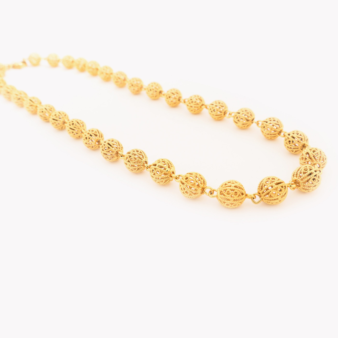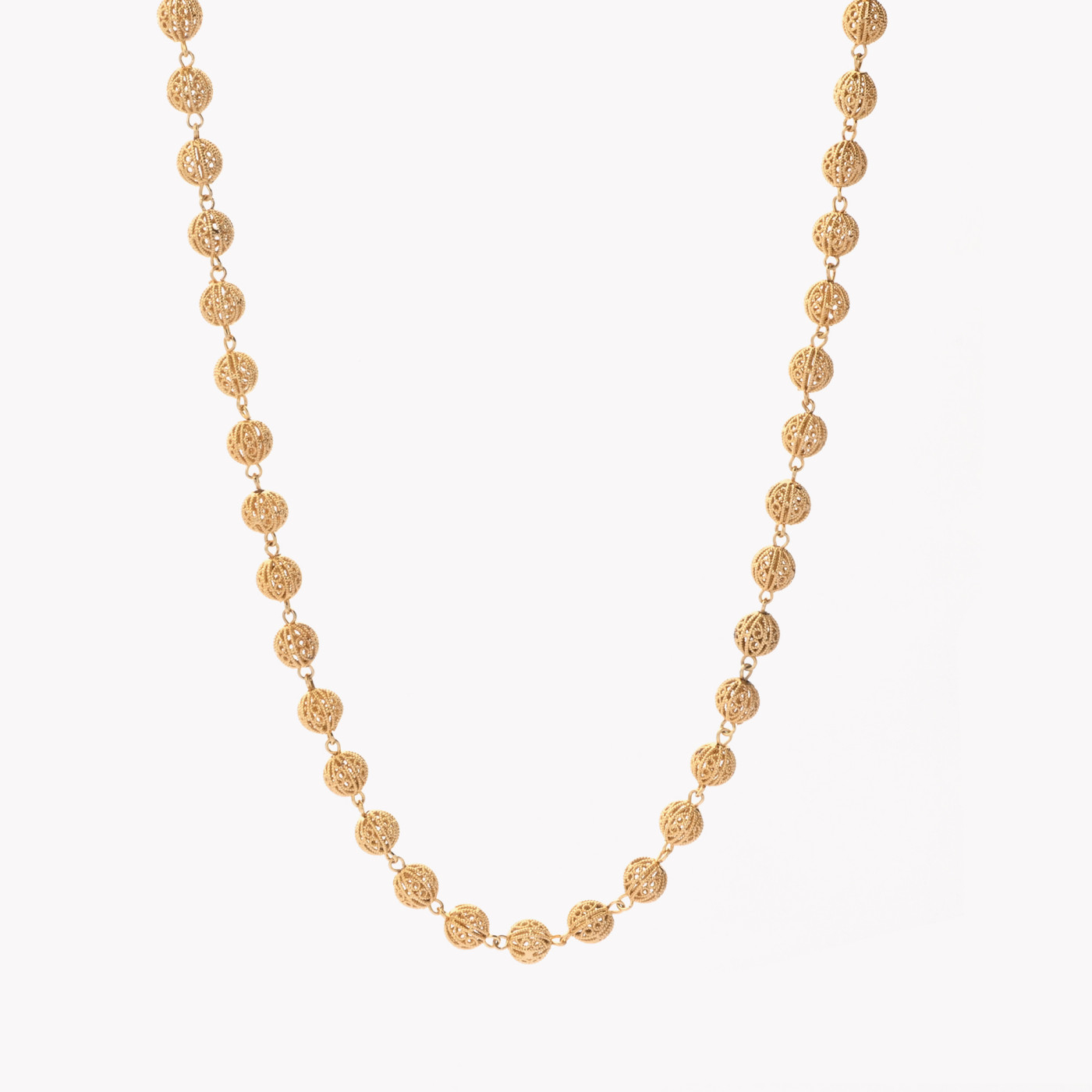 Colar Contas de Viana composto por esferas as "tradicionais contas" decoradas por filigrana.