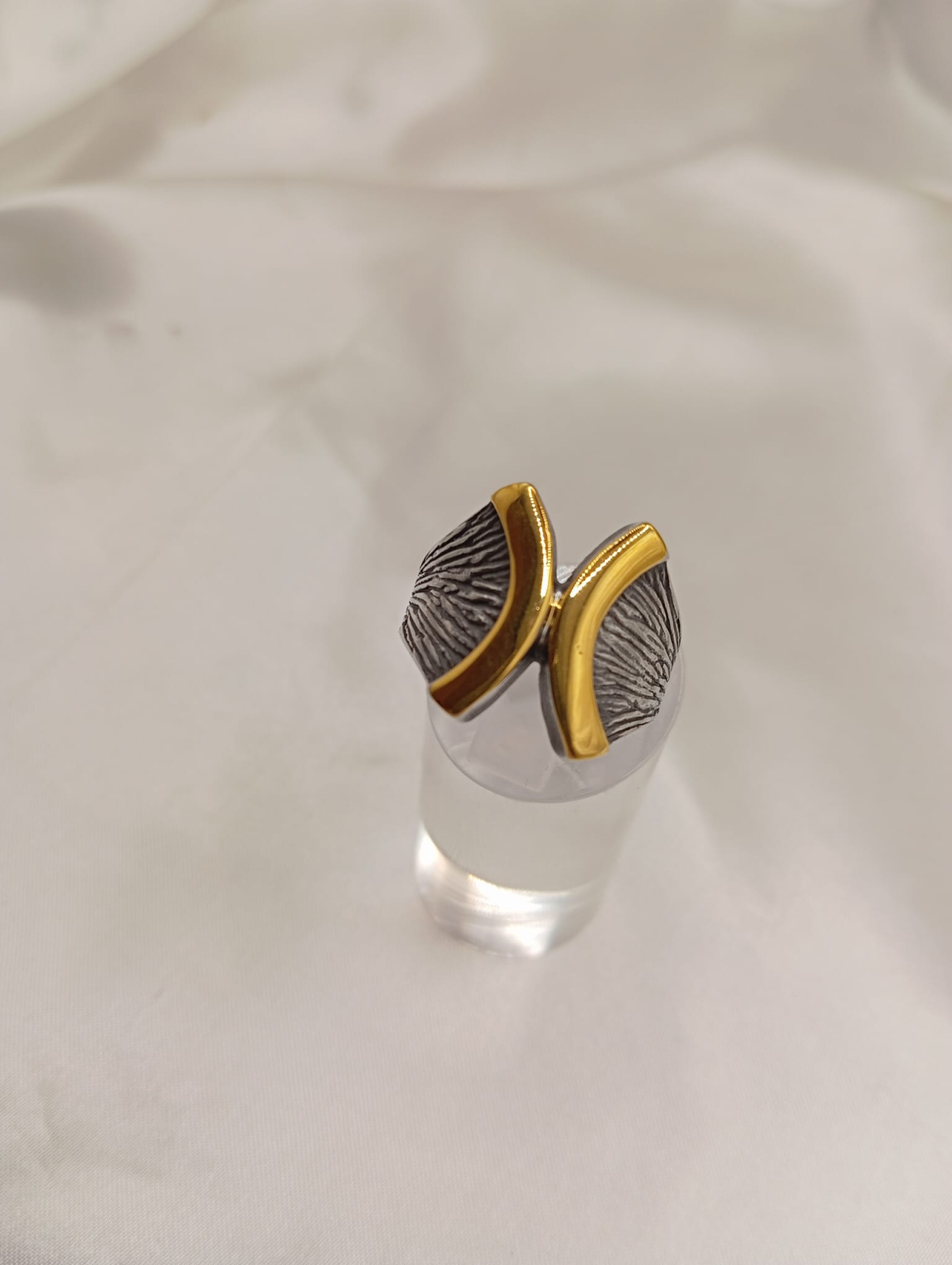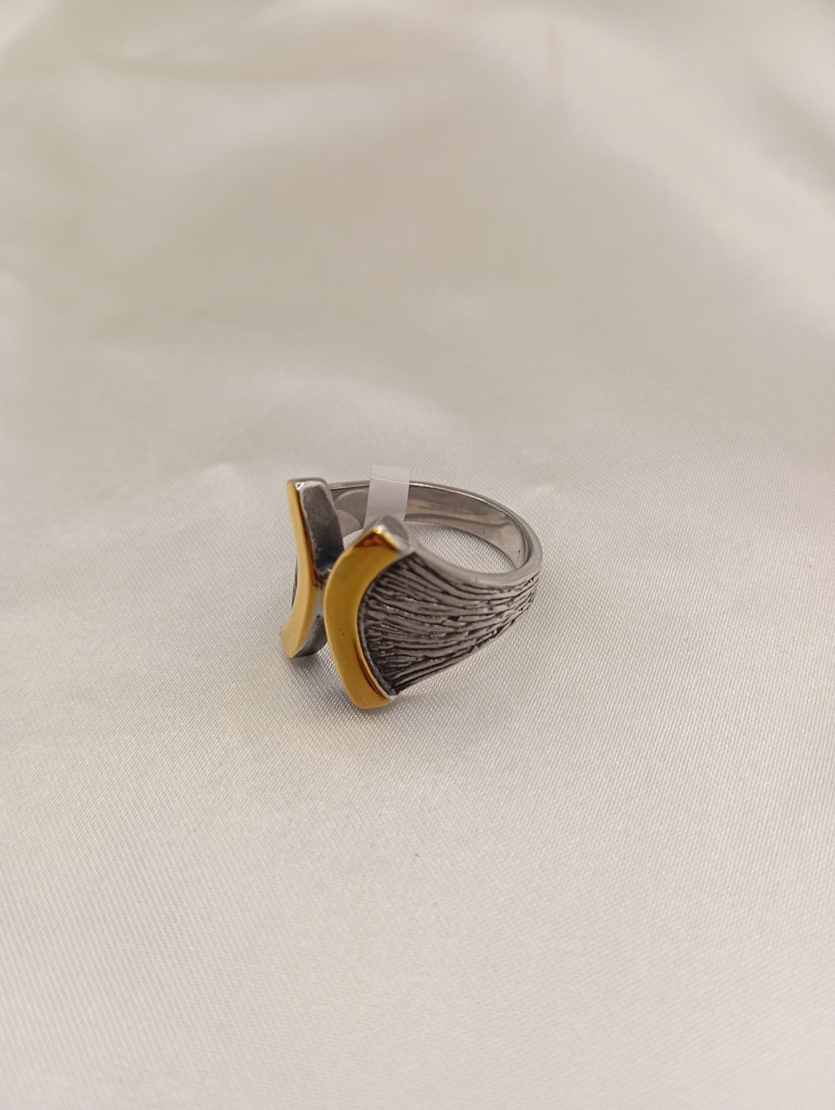 Anel em aço inoxidavel com combinação de dois banhos dourado e prateado