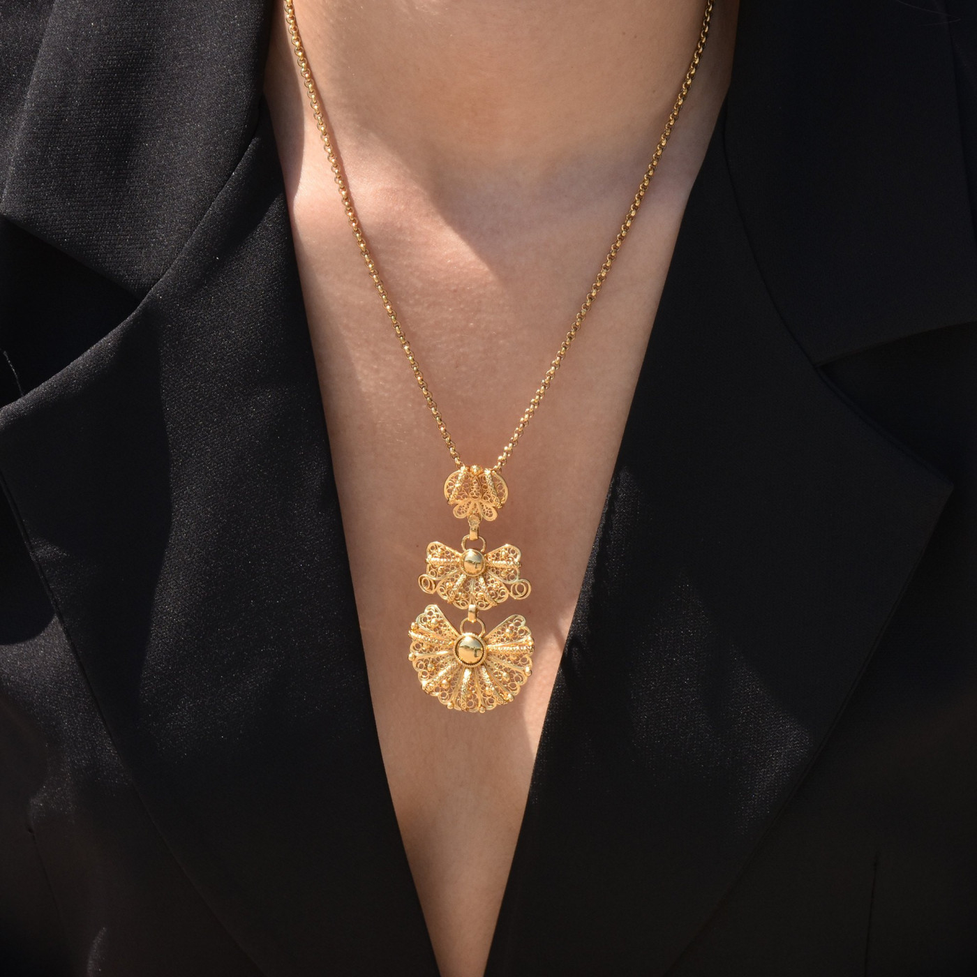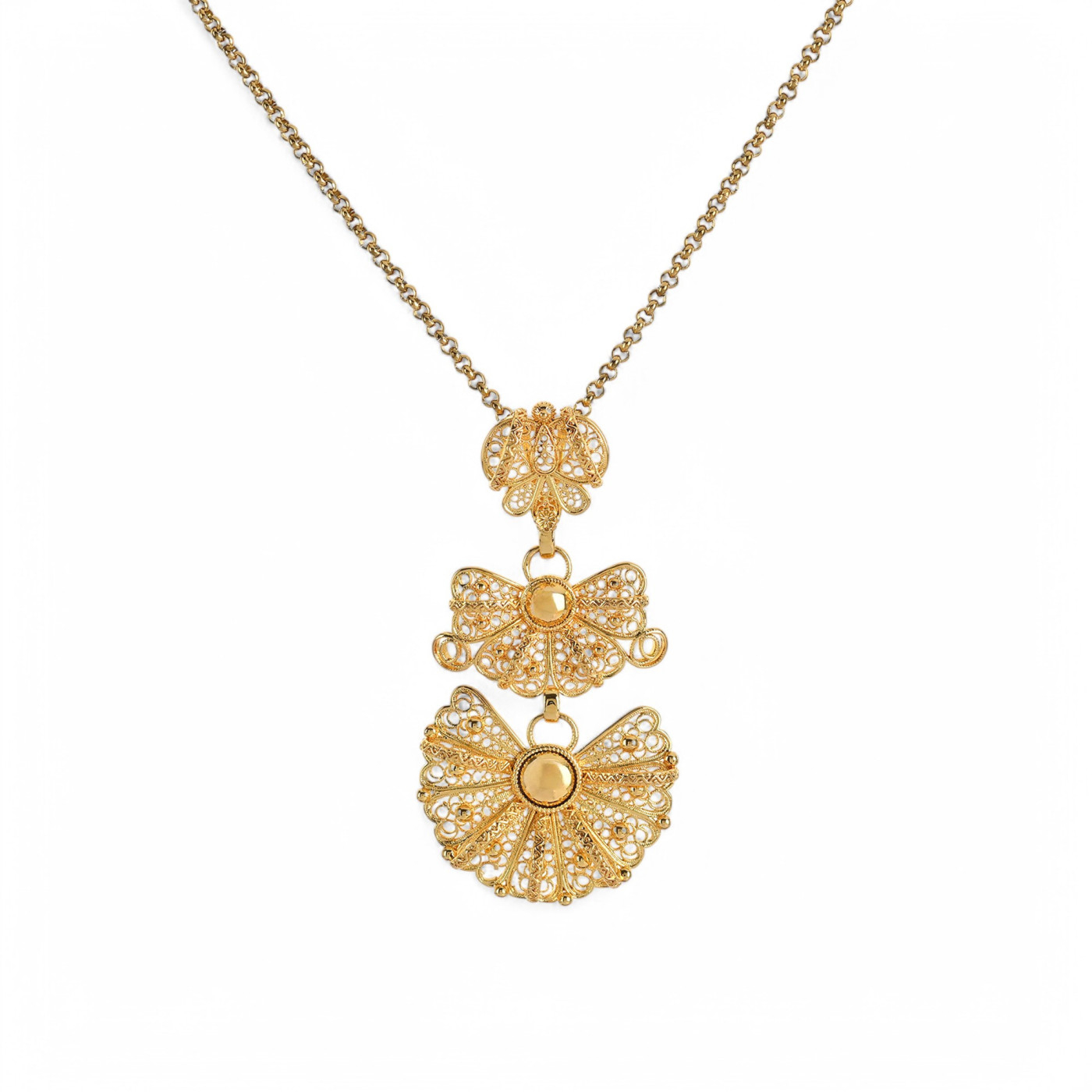 Colar folhos de filigrana em aço inoxiodavel banhado a ouro, inspirado na joias tradicionais portuguesas. Colar de 50 cm + 5 cm de extensor e pendente de 7 cm X 3.5 cm.