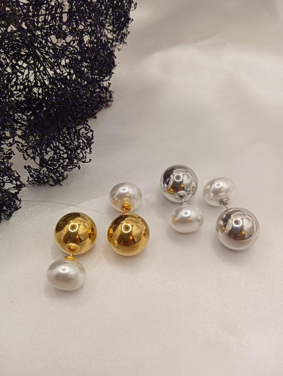 Brinco bola duplo com bola de 1.5 cm e pérola de 1.3cm