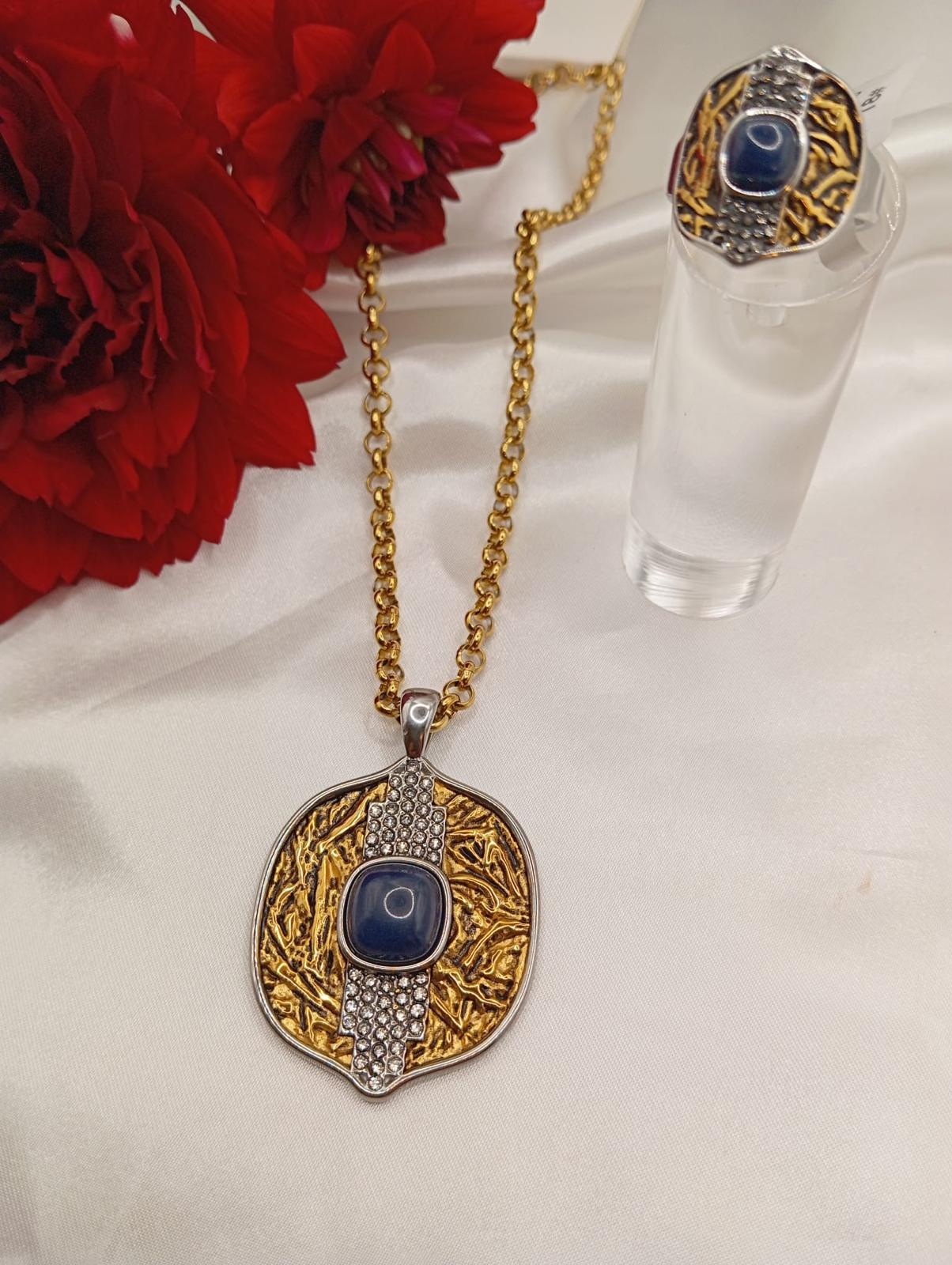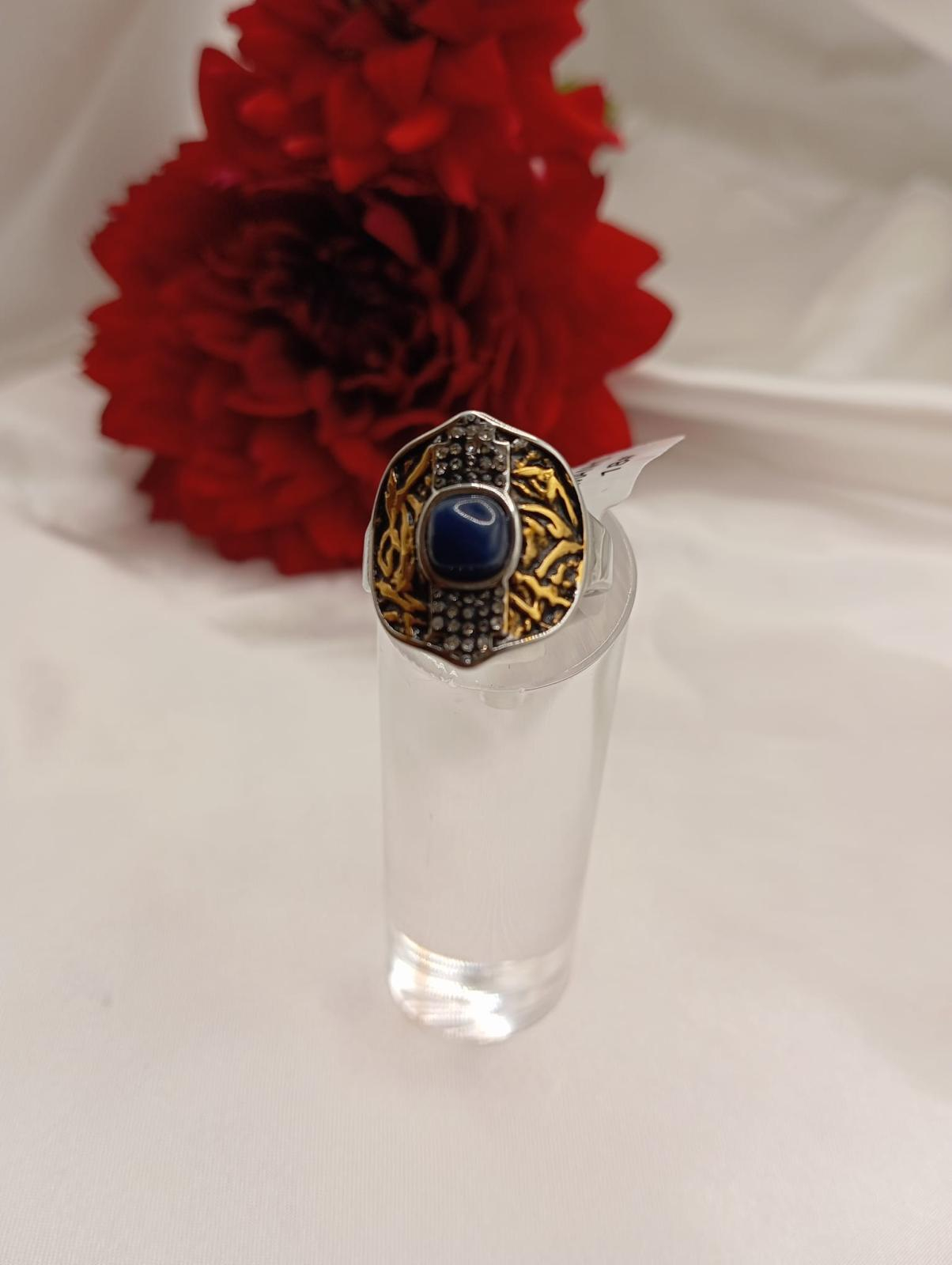 Anel Supremo com pedra natural azul marinho em aço inoxidavel banhado em duas cores de banho. Disponivel do tamanho 17 ao 21