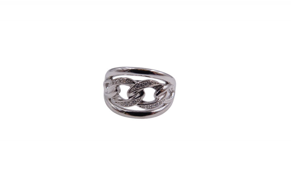 Anel de prata com zircónias.
