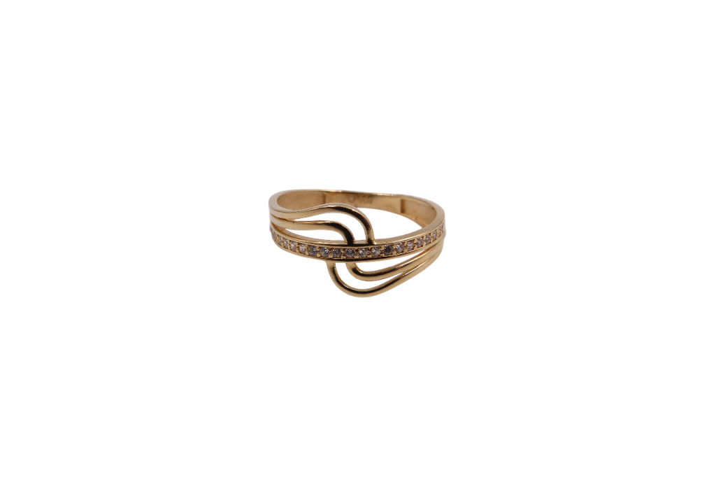 Anel ouro de 19.2 quilates com zircónias. Peso 2.3 g. Todos os artigos que vendemos são NOVOS.