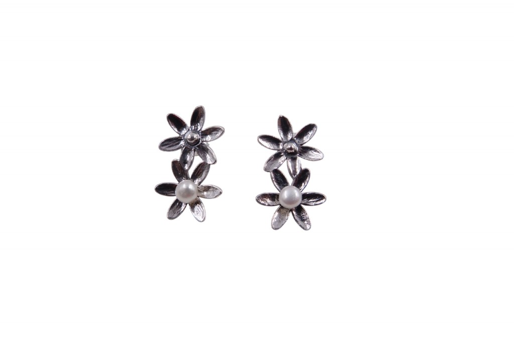 Brincos de prata, de espigão.