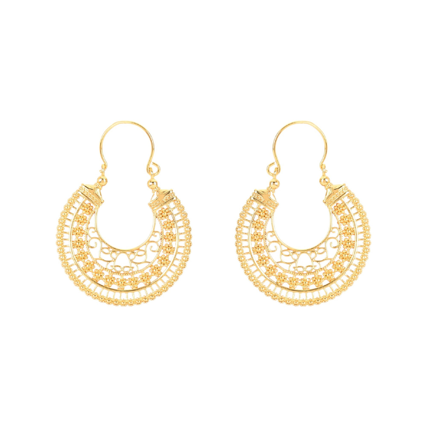 Arrecadas bordados de viana de filigrana em aço inoxidavel com banho de ouro.