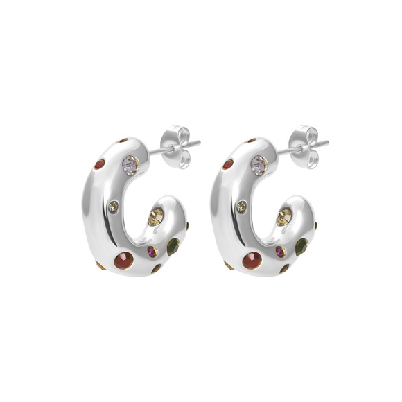 Os brincos iXXXi Gleam são feitos de aço inoxidável. São argolas grossas de 18 mm, incrustadas com zircônias em uma rica mistura de tons profundos, quentes e coloridos, refletindo as cores do outono. O brinco perfeito para um look outonal marcante e estiloso. Os brincos iXXXi Gleam são um verdadeiro item essencial para a sua festa de orelha! Você tem vários furos nas orelhas? Então use os brincos iXXXi Gleam no primeiro furo e combine com os brincos IXXXi Ear Studs Ball no segundo furo.