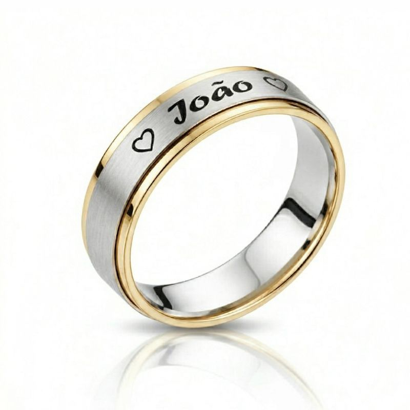 Aliança em Ouro 9k Amarelo e Prata 925, personalizada com gravações incluídas Caso pretenda gravação descreva a mesma no campo de Observações da encomenda.